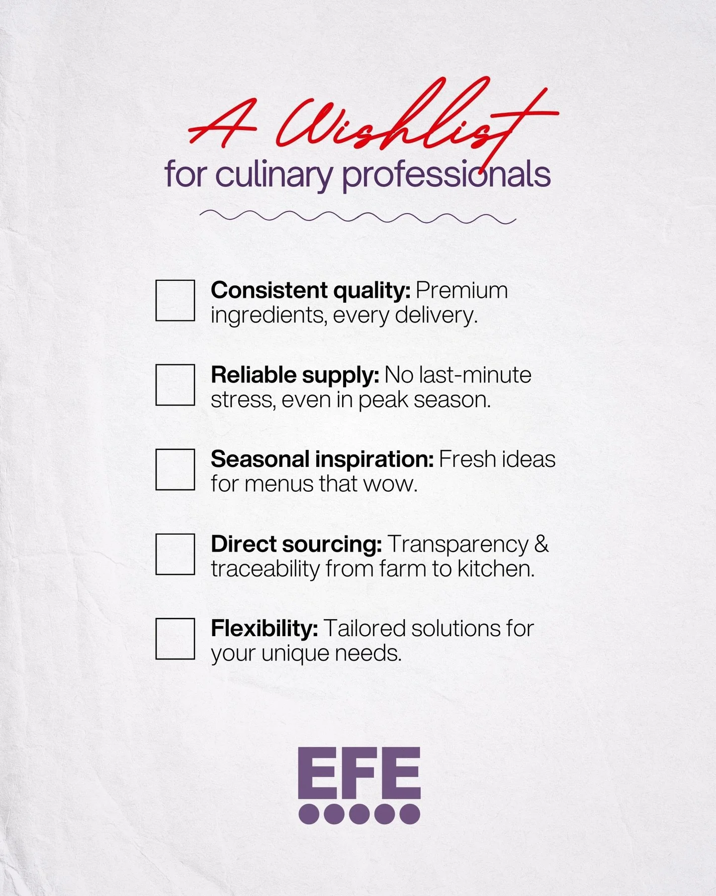 At EFE Horeca, we view food as a craft and a connection. For nearly 20 years, we supported chefs, restaurants and retailers in the Dutch hospitality scene.
